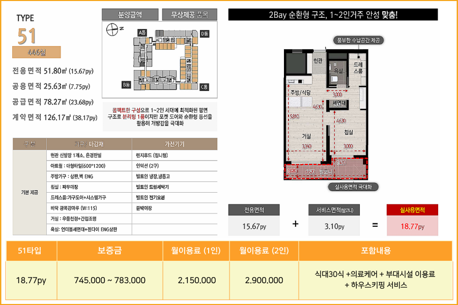 ◆ 호실 타입별 보증금 & 월 이용료